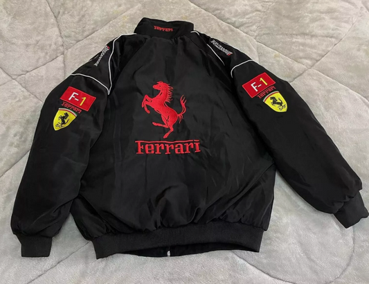 Vintage Ferrari Jacket Black Embroidered- Unisex - Outdoor Coat Women & Mens